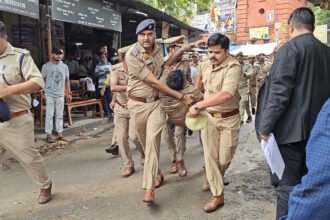 वाराणसी. धर्म नगरी काशी के मदनपुरा क्षेत्र स्थित प्राचीन हनुमान मंदिर में लाउडस्पीकर पर हनुमान चालीसा के पाठ को लेकर उपजा विवाद गरमा गया है. गुरुवार को पाठ का विरोध करने और पुजारी को धमकाने के आरोप में पुलिस ने एक मुस्लिम पिता-पुत्र को गिरफ्तार कर लिया है. मदनपुरा क्षेत्र स्थित प्राचीन हनुमान मंदिर में शनिवार को हनुमान चालीसा का…