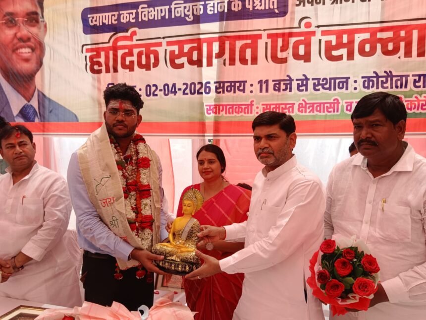लोहता के कोरौता गाँव में बुधवार, 2 अप्रैल 2026 को असिस्टेंट कमिश्नर विकास पटेल का स्वागत किया गया। व्यापार कर विभाग में असिस्टेंट कमिश्नर नियुक्त होने के बाद गाँव में उनके पहले आगमन पर क्षेत्रवासियों और ग्रामवासियों ने उनका अभिनंदन किया। कोरौता गाँव के रामलीला मैदान में सुबह 11 बजे से "हार्दिक स्वागत एवं सम्मान समारोह" आयोजित किया गया।…