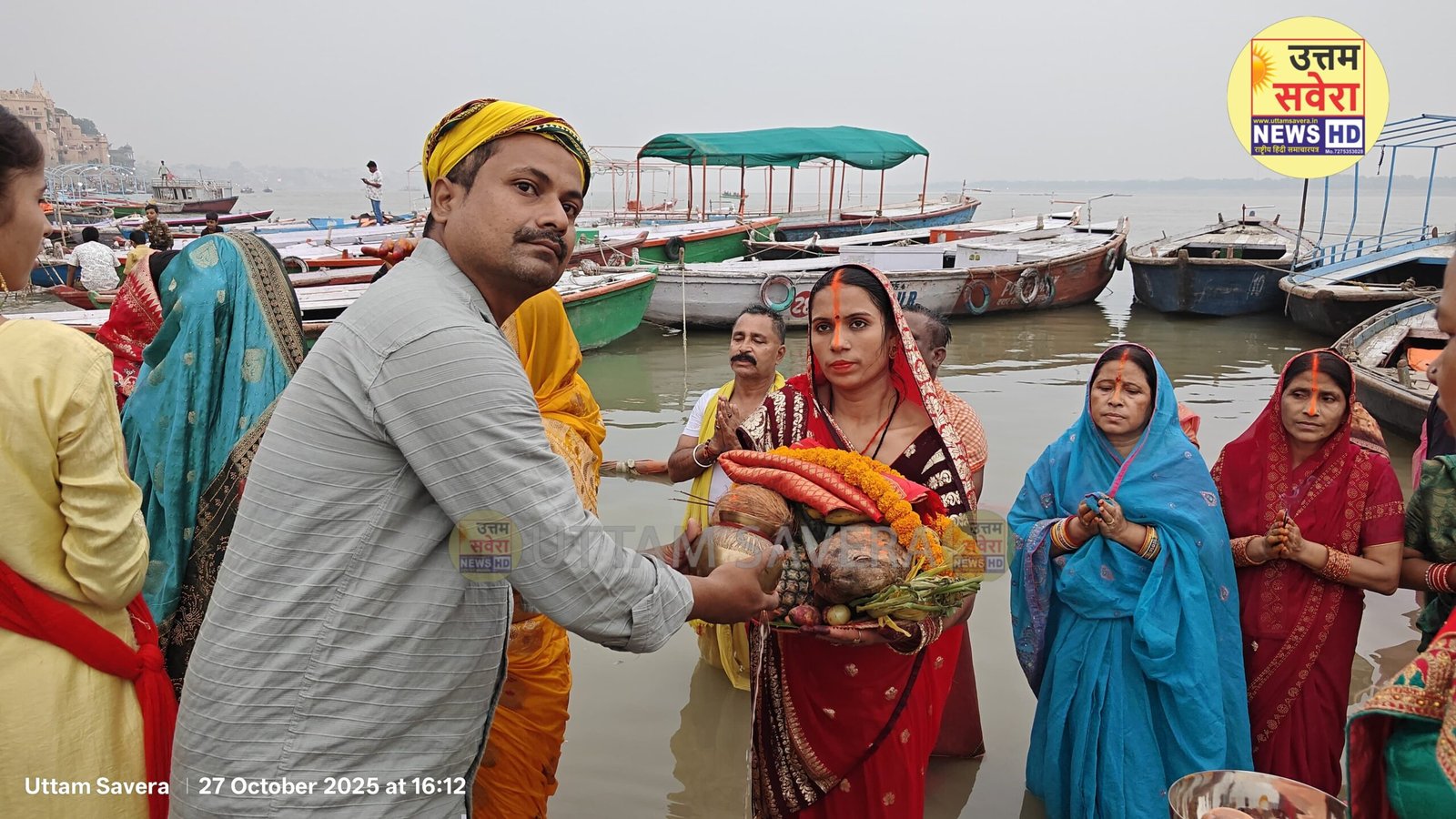 काशी में लोक आस्था का महापर्व छठ: अस्ताचलगामी सूर्य को दिया गया अर्घ्य, घाटों पर उमड़ी भक्तों की भीड़