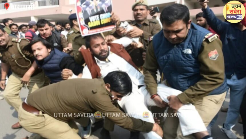 उत्तर प्रदेश युवा कांग्रेस (पूर्वी जोन) द्वारा “वोट चोर गद्दी छोड़ – SIR बंद करो – बेरोजगारी हटाओ” जैसे महत्वपूर्ण मुद्दों पर जनाक्रोश मार्च एवं रैली का आयोजन किया जा रहा था। कार्यक्रम का स्थल शास्त्री घाट, कचहरी थी, जहां जनाक्रोश सभा का आयोजन प्रस्तावित था। इसके बाद रवींद्रपुरी स्थित प्रधानमंत्री कार्यालय के घेराव हेतु प्रस्थान किया जाना था। कांग्रेस की ओर से यह रैली युवाओं की आवाज को उठाने और बेरोजगारी के खिलाफ संघर्ष को मजबूत करने का एक प्रयास बताया गया। युवा कांग्रेस का यह कदम महत्वपूर्ण माना जा रहा था जिसे पुलिस ने कार्रवाई कर विफल कर दिया।