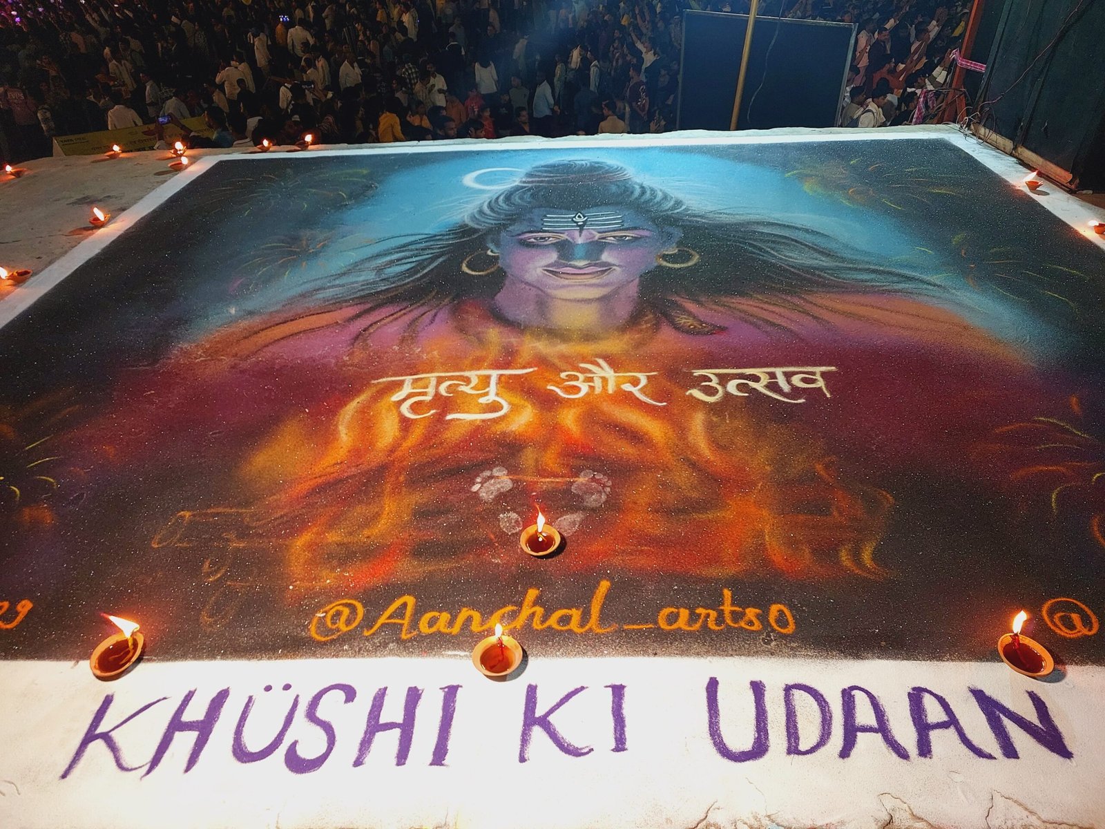 इसी विषय पर संस्था ने रंगोली बनाकर शिव की नगरी काशी मे मृत्यु भी एक उत्सव हो सकता है ऐसा संदेश दिया.