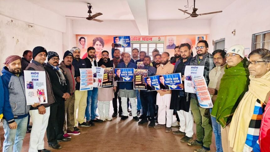 महानगर अध्यक्ष राघवेंद्र चौबे ने कहा की* महानगर युवा कांग्रेस द्वारा आज मनरेगा बचावों महासंग्राम और यूथ जोड़ो अभियान का पोस्टर जारी किया गया मनरेगा सिर्फ एक योजना नहीं बल्कि करोड़ों गरीब, मजदूर, किसान और ग्रामीण परिवारों की रोज़ी-रोटी का मजबूत आधार है. मौजूदा केंद्र सरकार जानबूझकर बजट में कटौती, भुगतान में देरी और तकनीकी अड़चनों के ज़रिए मनरेगा को कमजोर करने का काम कर रही है, जिससे सबसे अधिक नुकसान गरीब तबके को हो रहा है. कांग्रेस पार्टी मनरेगा को कमजोर नहीं बल्कि और मजबूत करना चाहती है, ताकि हर हाथ को काम और हर परिवार को सम्मानपूर्वक जीवन मिल सके.‘यूथ जोड़ो अभियान’ कांग्रेस की भविष्य की राजनीति का आधार है. आज देश का युवा बेरोजगारी, महंगाई और शिक्षा के निजीकरण से परेशान है. कांग्रेस युवाओं को संविधान, लोकतंत्र और सामाजिक न्याय की विचारधारा से जोड़ते हुए उनके हक़ की लड़ाई लड़ेगी. वाराणसी की धरती से यह संदेश जाएगा कि युवा और मजदूर विरोध की नहीं, परिवर्तन की ताकत हैं.